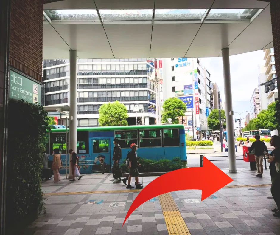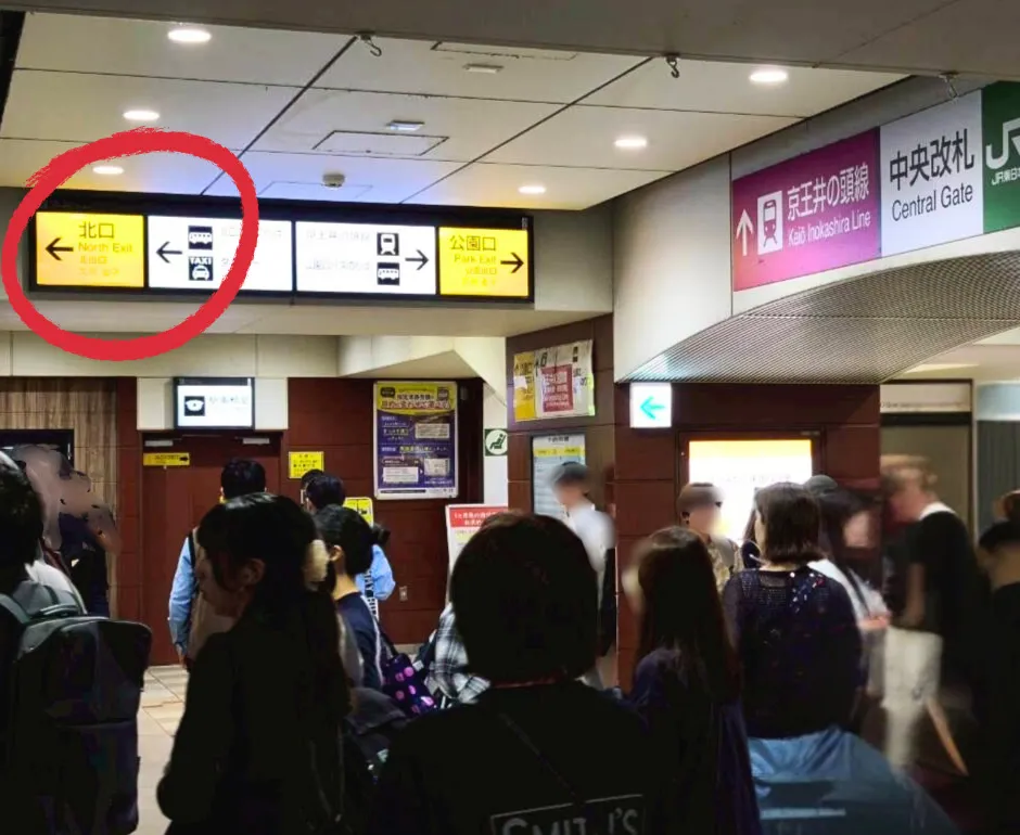「吉祥寺駅」北口改札を出ます。改札を出たら左へ進んでください。